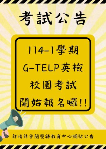【✍🏻人文與設計學院/雙語教育中心 公告】114-1 G-TELP校園考試 (2025-11-17 截止報名)